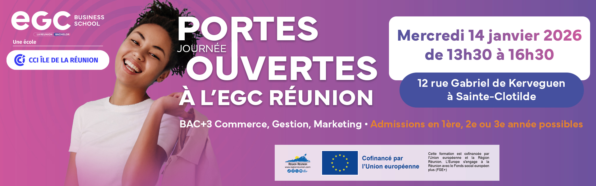 L’EGC Business School de La Réunion, membre du premier réseau de bachelors en France et du pôle formation de la Chambre de Commerce et d’Industrie de La Réunion (CCI Réunion), se distingue par son engagement envers l’économie du territoire réunionnais depuis plus de 30 ans.